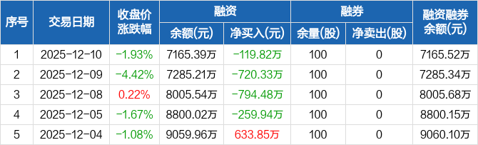 达嘉维康:连续4日融资净偿还累计1894.57万元(12-10)