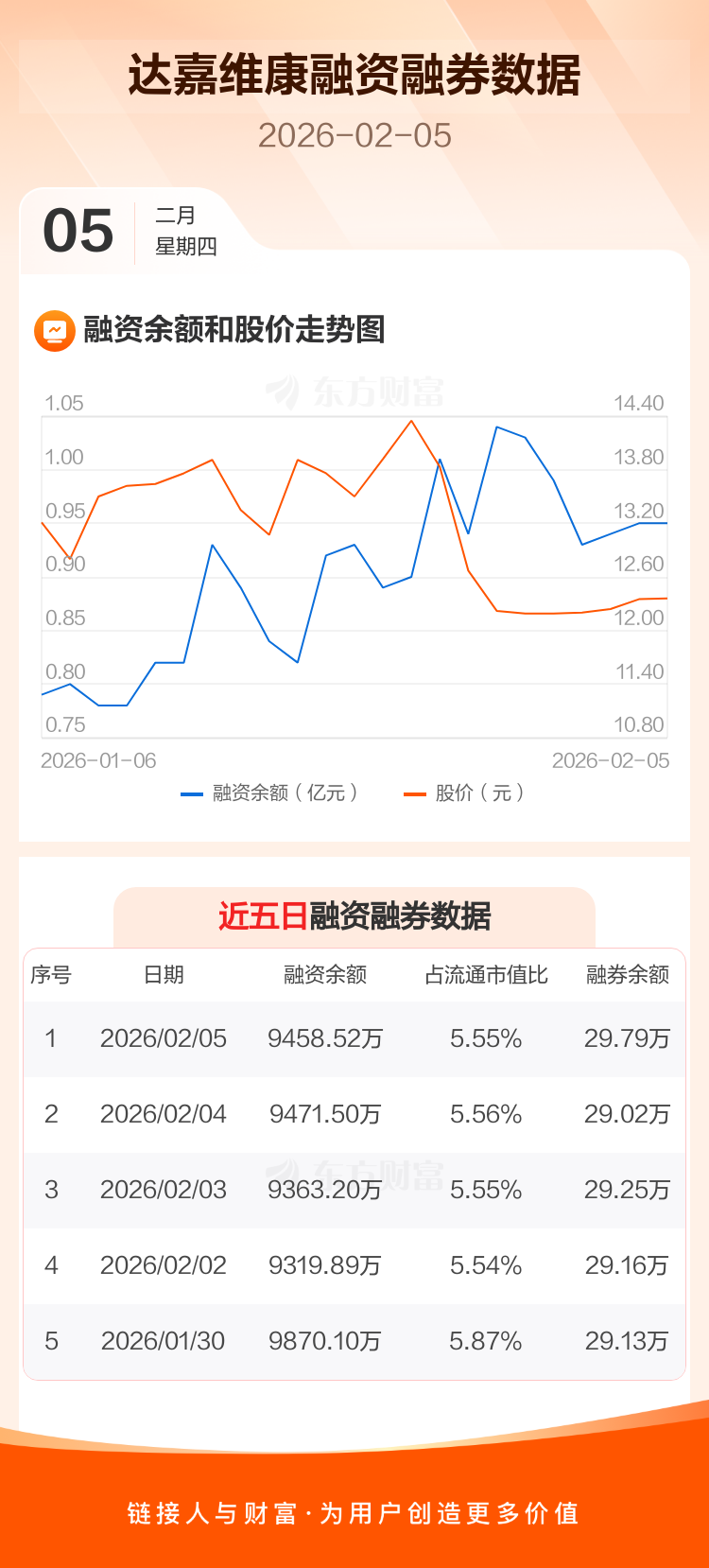 交易所最新数据显示,达嘉维康于2026年2月5日获融资买入825.09万元,融资偿还838.07万元,当日融资净偿还12.98万元。目前,该股融资余额9458.52万,占流通市值比例为5.55%。