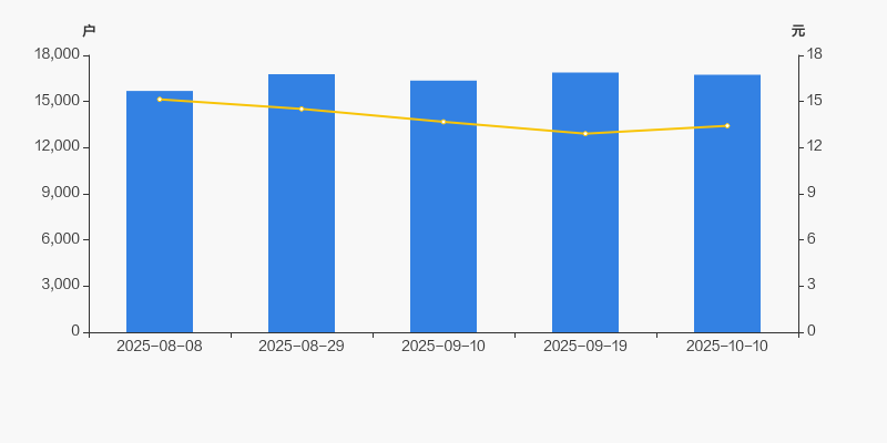 2025年8月8日至今,公司股东户数有所增长,区间涨幅为6.71%。2025年8月8日至2025年10月10日区间股价下降11.36%。