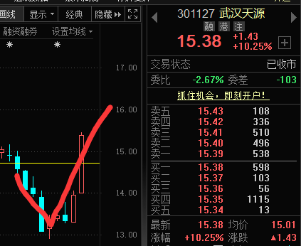 武汉天源黄线(庄家成本线),自救回血,回血结束,卖出了结。