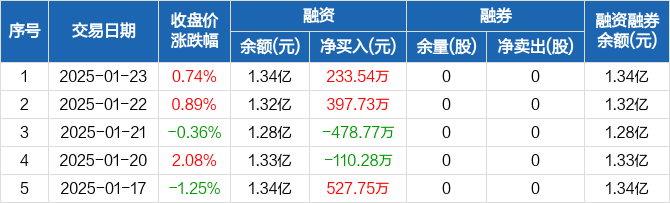 强瑞技术:融资净买入233.54万元,融资余额1.34亿元(01-23)