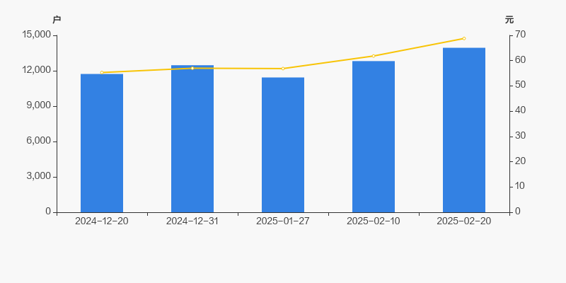 截至2025年2月20日,公司最新总股本为7388.66万股,其中流通股本为2862.02万股。户均持有流通股数量由上期的2233股下降至2052股,户均流通市值14.11万元。