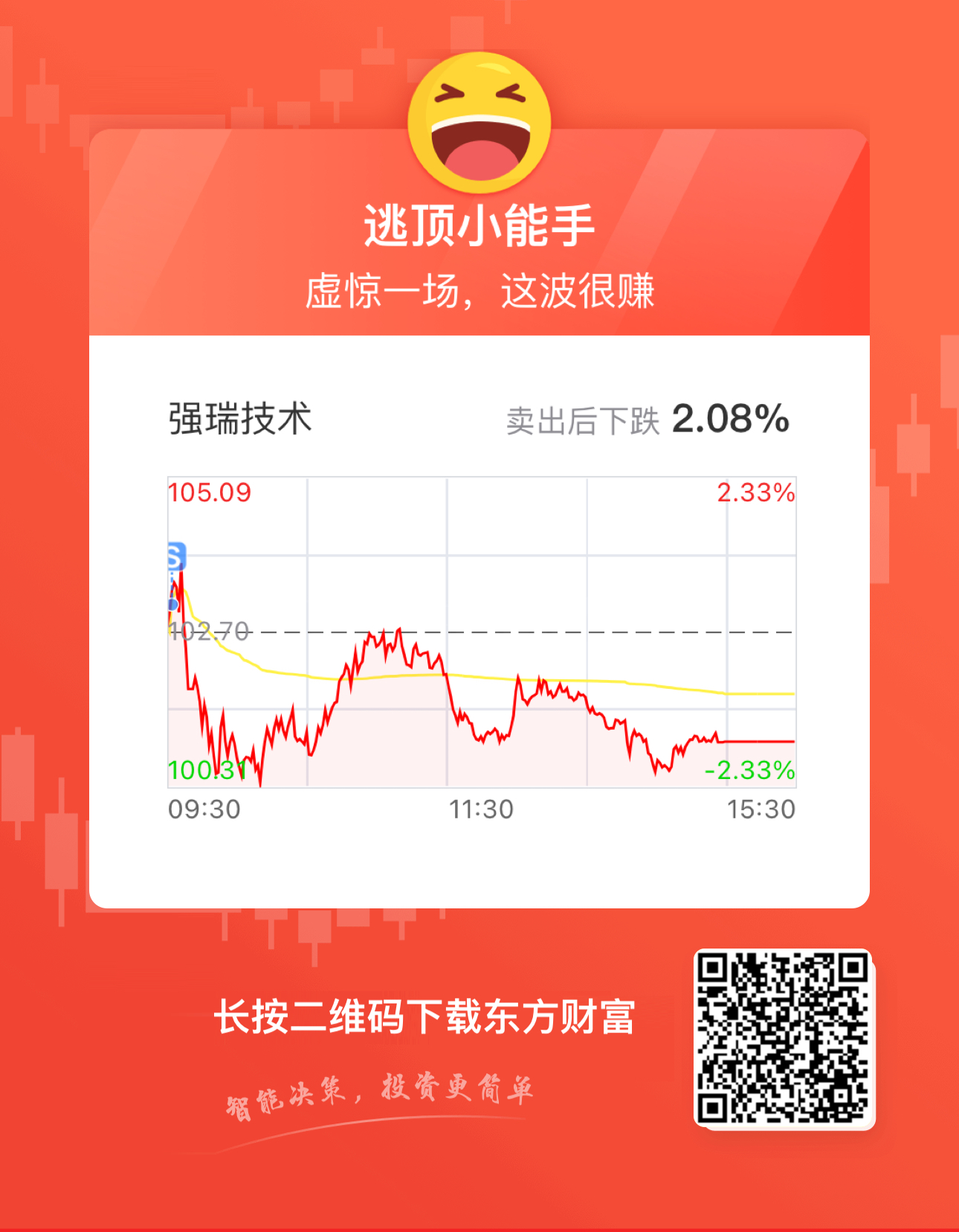 $强瑞技术(SZ301128)$ 上周五抄底的,早盘出。明日应该还有机会