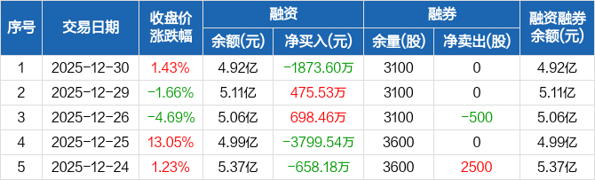 强瑞技术:融资净偿还1873.6万元,融资余额4.92亿元(12-30)