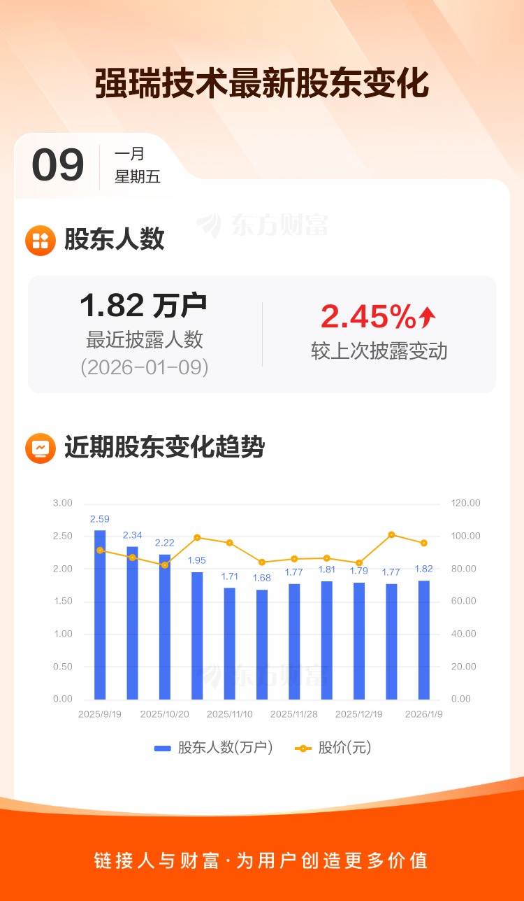 强瑞技术:截至1月9日最新股东户数1.82万户,较上期增加2.45%