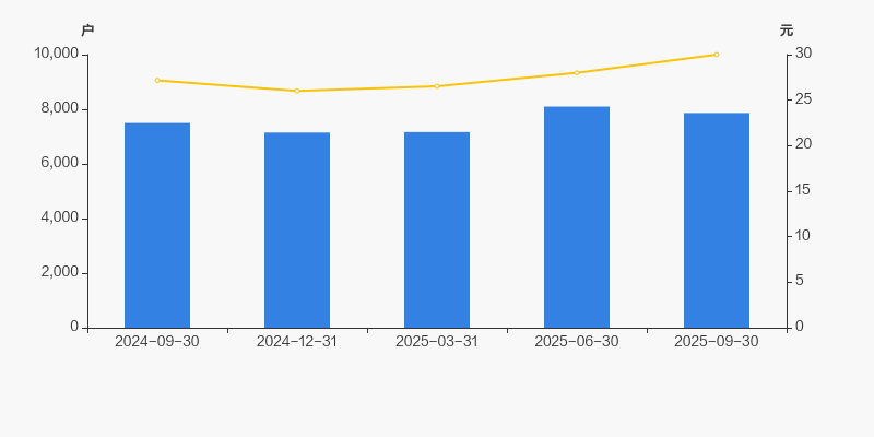 截至2025年9月30日,公司最新总股本为7649.47万股,其中流通股本为5841.31万股。户均持有流通股数量由上期的7212股上升至7429股,户均流通市值22.29万元。