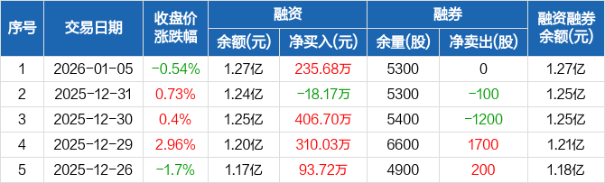 聚赛龙:融资净买入235.68万元,融资余额1.27亿元(01-05)