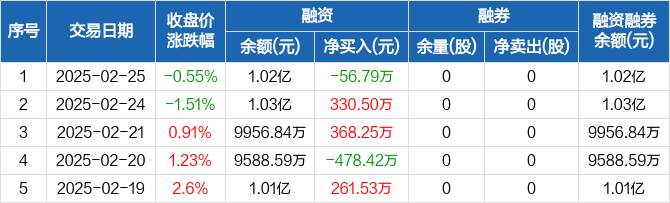 满坤科技:融资净偿还56.79万元,融资余额1.02亿元(02-25)