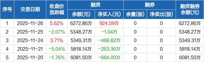 金钟股份:融资净买入924.59万元,融资余额6272.86万元(11-26)