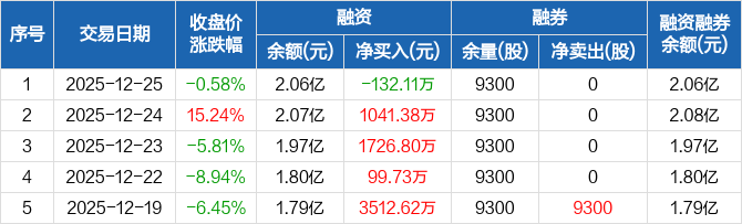 金钟股份:融资净偿还132.11万元,融资余额2.06亿元(12-25)