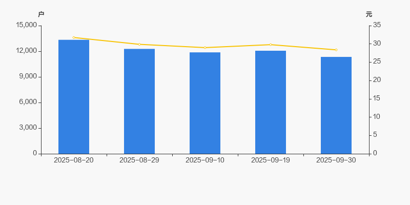 2025年8月20日至今,公司股东户数显著下降,区间跌幅为15.00%。2025年8月20日至2025年9月30日区间股价下降10.61%。
