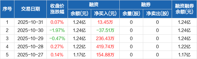 瑞德智能:融资净买入13.45万元,融资余额1.24亿元(10-31)