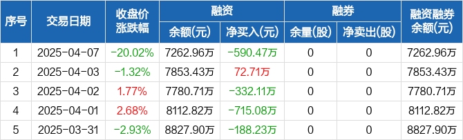 招标股份:融资净偿还590.47万元,融资余额7262.96万元(04-07)