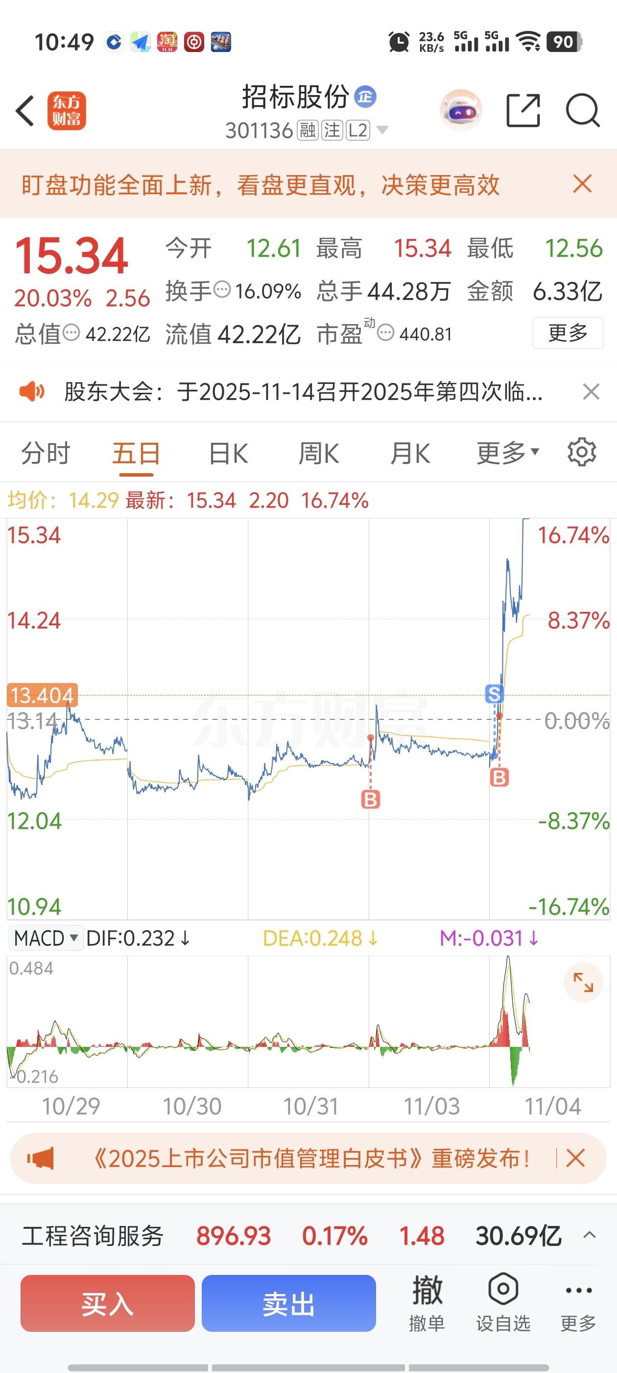 $招标股份(SZ301136)$ 尼么,早上洗盘把我洗出去了,幸好我又回来看看再买入。弄了个反T