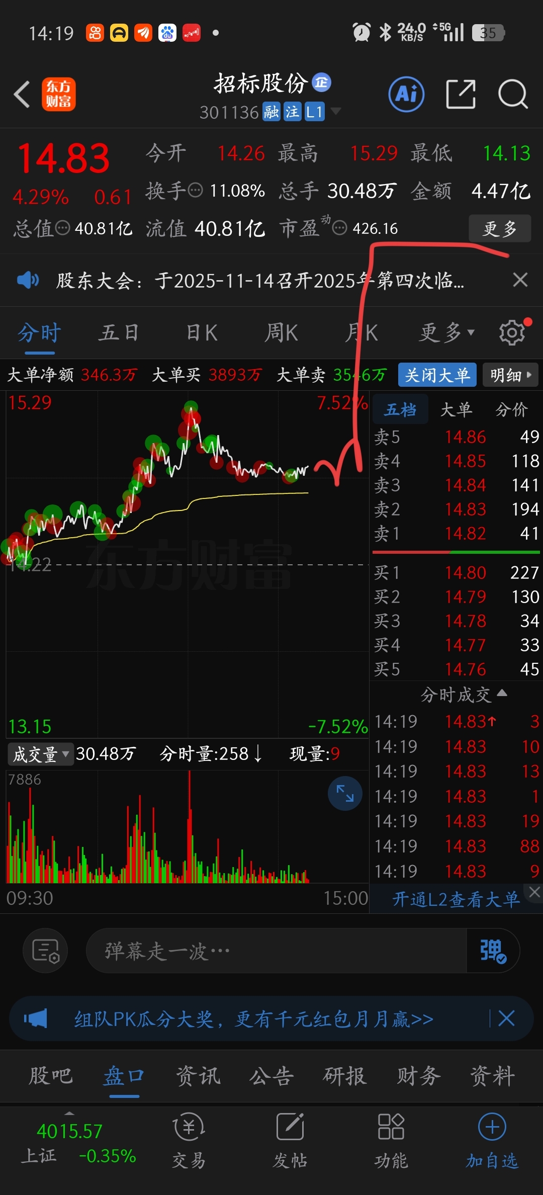 $招标股份(SZ301136)$ 王德发来救我们