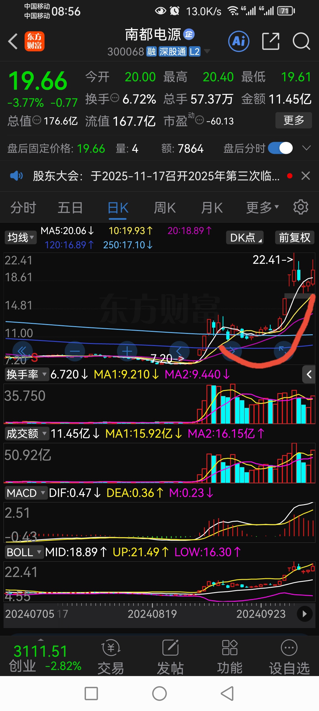 公司基本面没有潜在爆雷风险,K线图呈现U型右侧突破趋势,但时间还不够(通常要9到