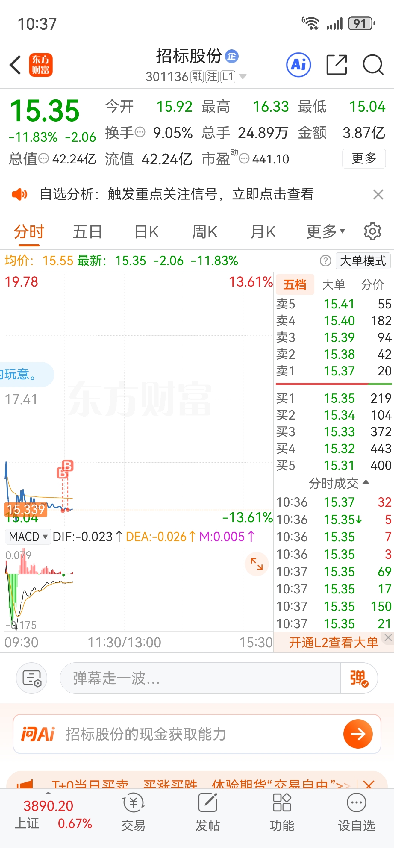 $招标股份(SZ301136)$ 主力我全仓买进了,可以拉红了