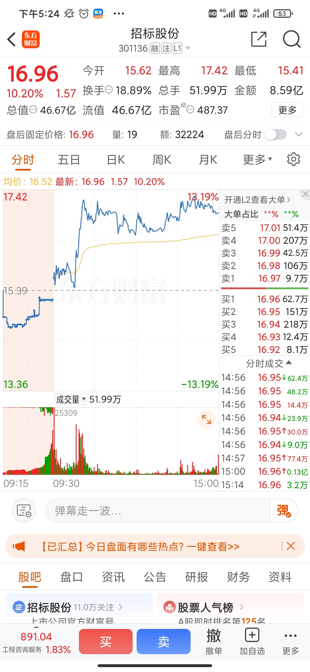 $招标股份(SZ301136)$ 符合预期