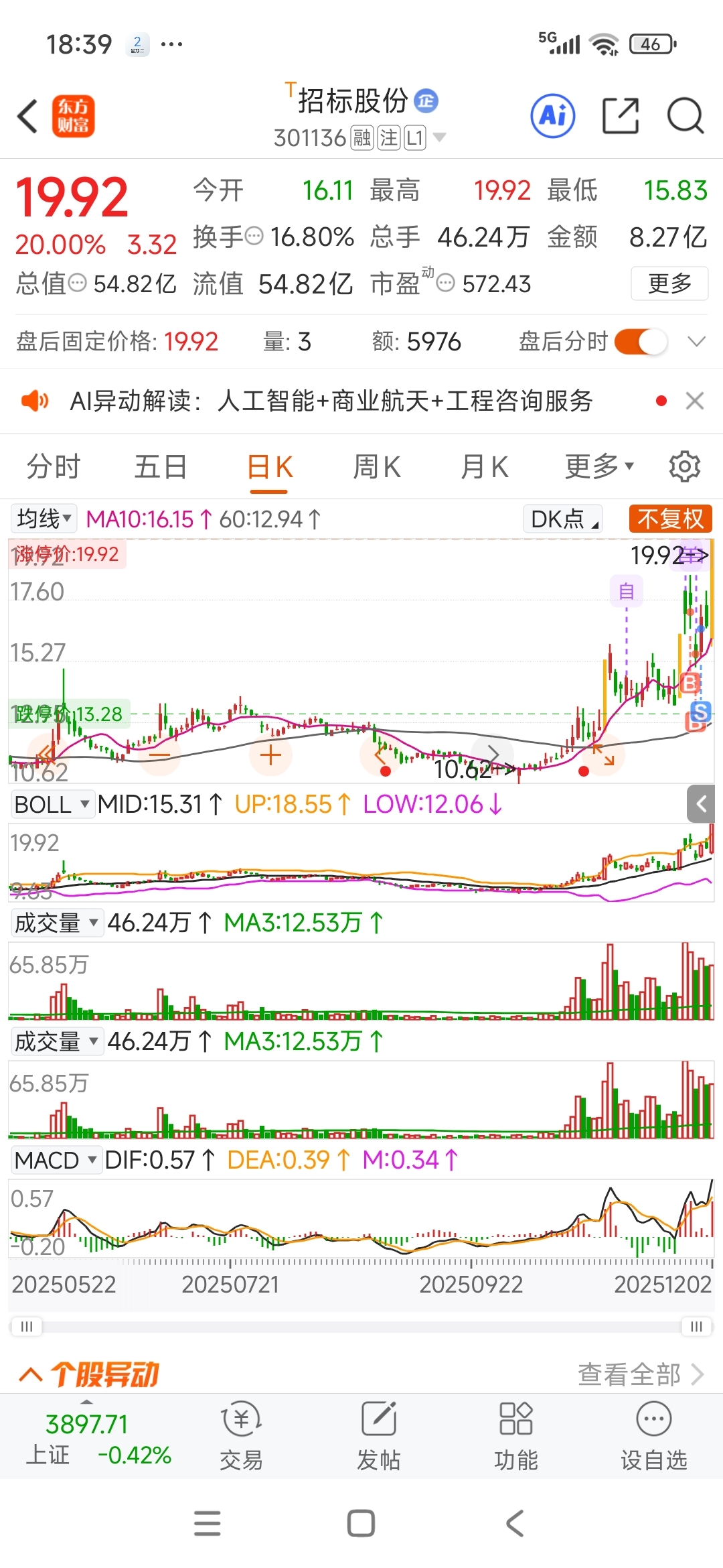 $招标股份(SZ301136)$ 勇敢抄底还是被洗了