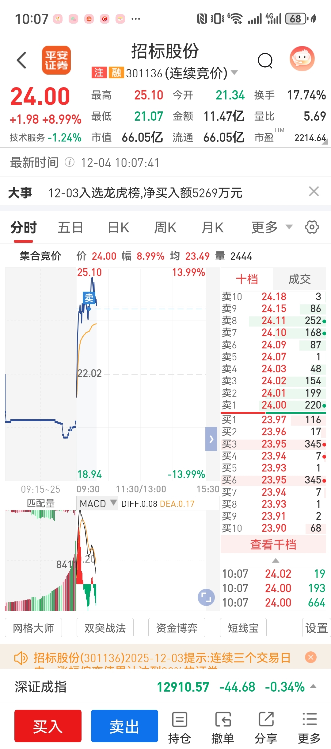 $招标股份(SZ301136)$ 感觉卖早了