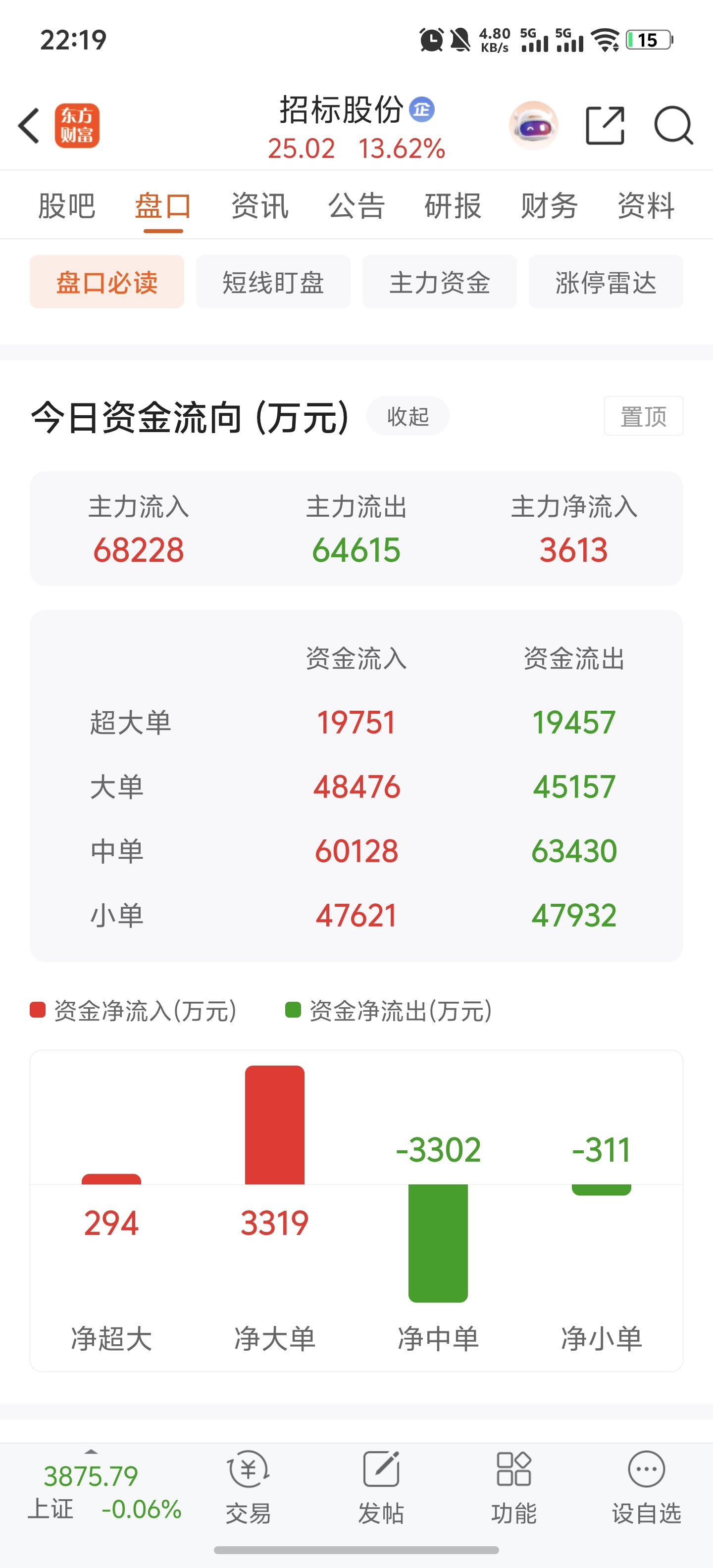 $招标股份(SZ301136)$ 今天主力净流入这么多,明天必须大涨,主力志存高远。