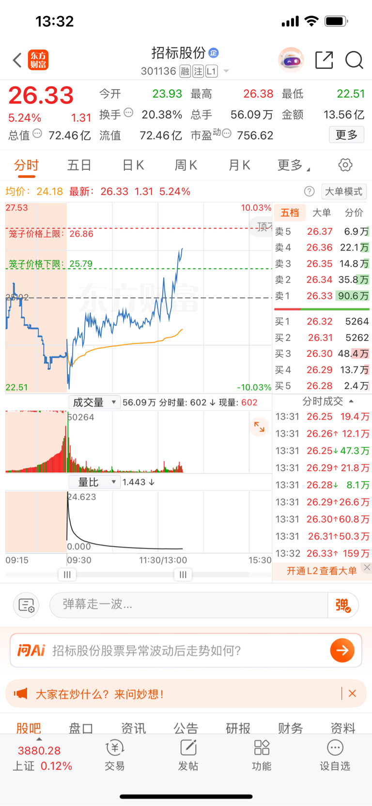 $招标股份(SZ301136)$ 给我很多机会了,我为什么不上车