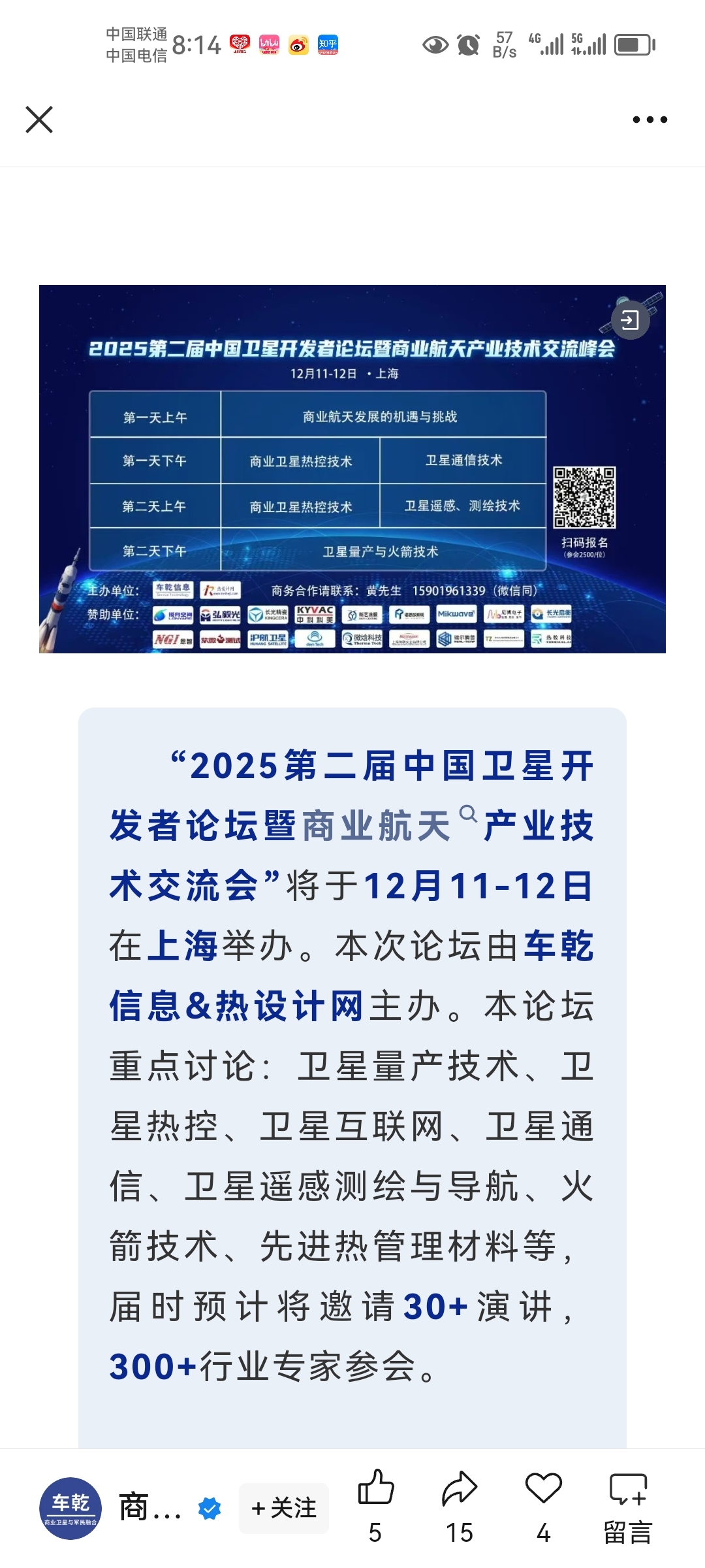 $雷科防务(SZ002413)$  刷朋友圈无意间看到,我们公司有个客户参加第一个商业航天技术交流博览会!包括,热控,温控,通讯,遥感等等!这还是刚开始,你就说这个题材能炒多久,多广吧!