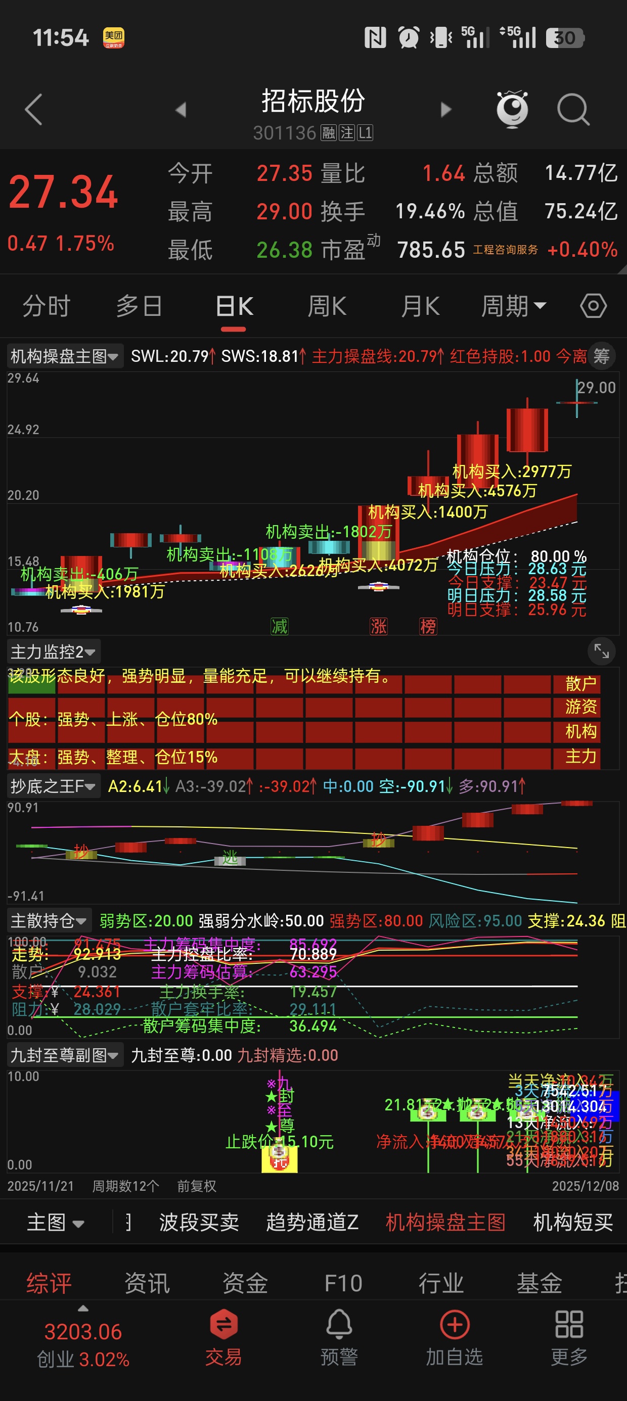 $招标股份(SZ301136)$ 这种票希望越跌越补!!龙头回调加仓模式