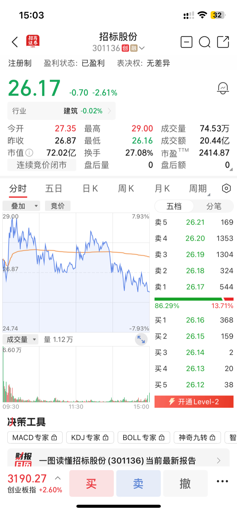 卧槽今天又冲高回落,跌了几年股票,招标股份板块跌幅榜第三,今天又没跟板块!