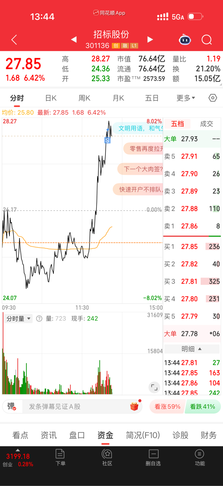 $招标股份(SZ301136)$ 感谢主力,全仓撤退,吃了50厘米