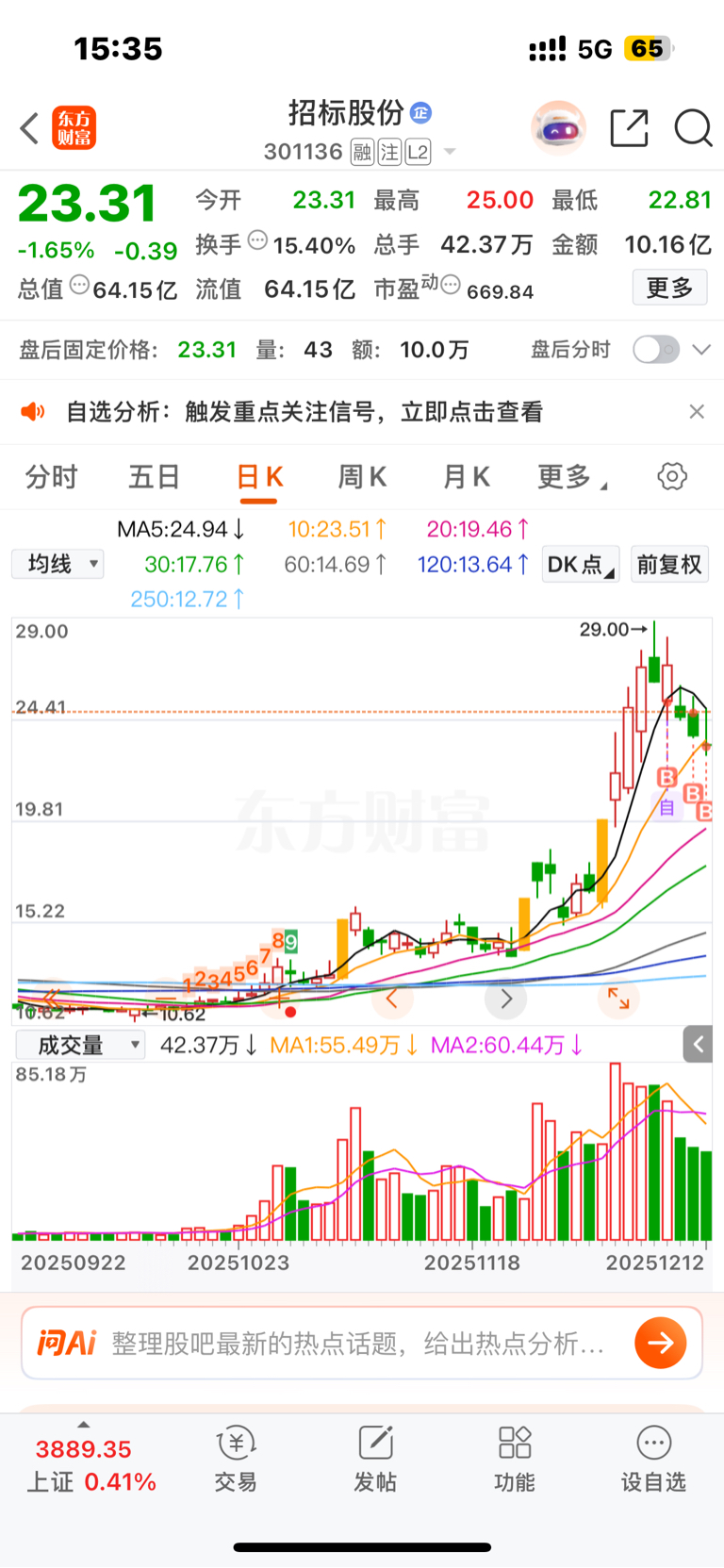 $招标股份(SZ301136)$ 继续加仓