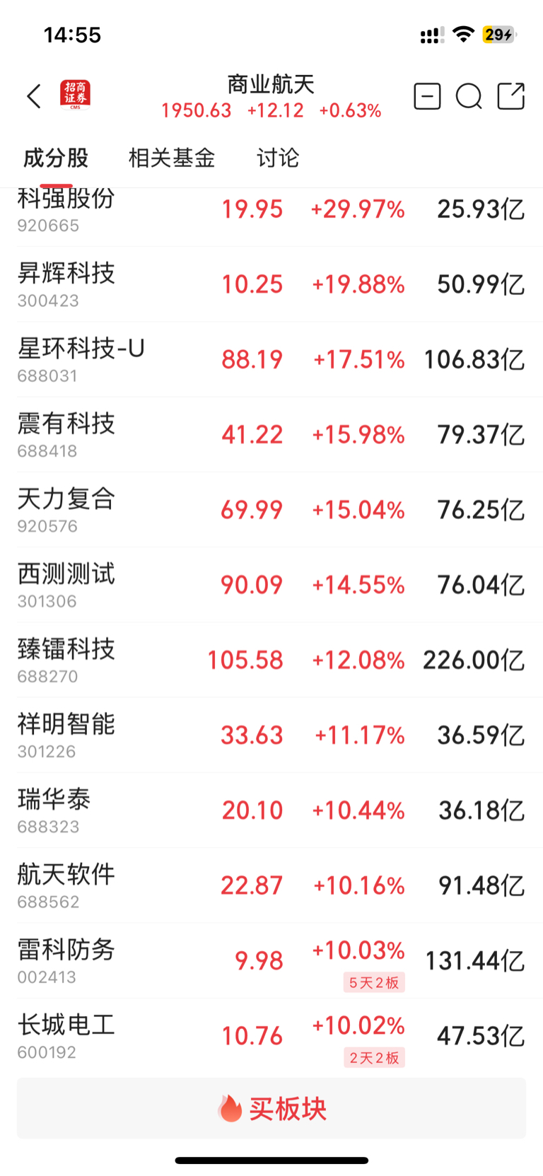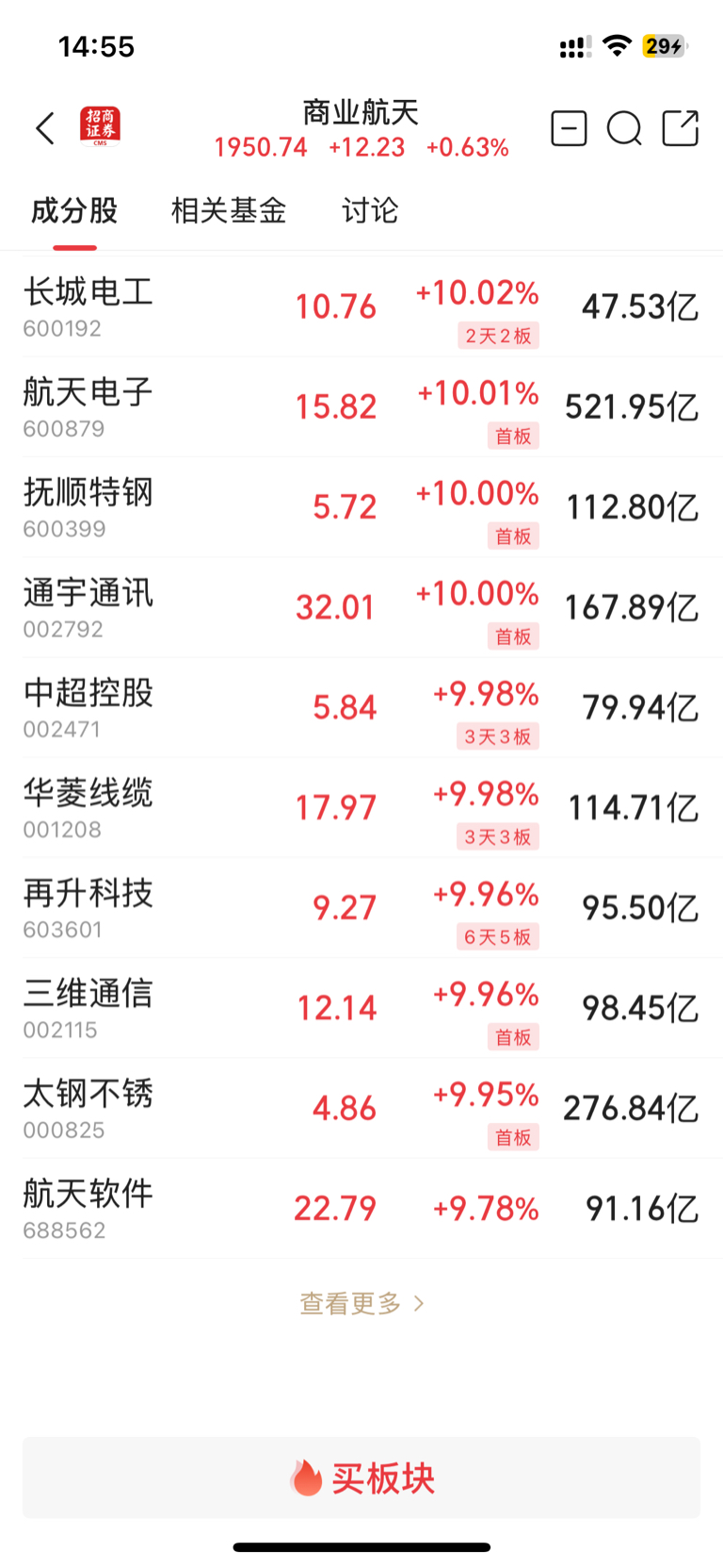 招标跌了一星期了!商业航天涨停潮一个星期了!今天商业航天继续涨停潮!旗帜鲜明的看
