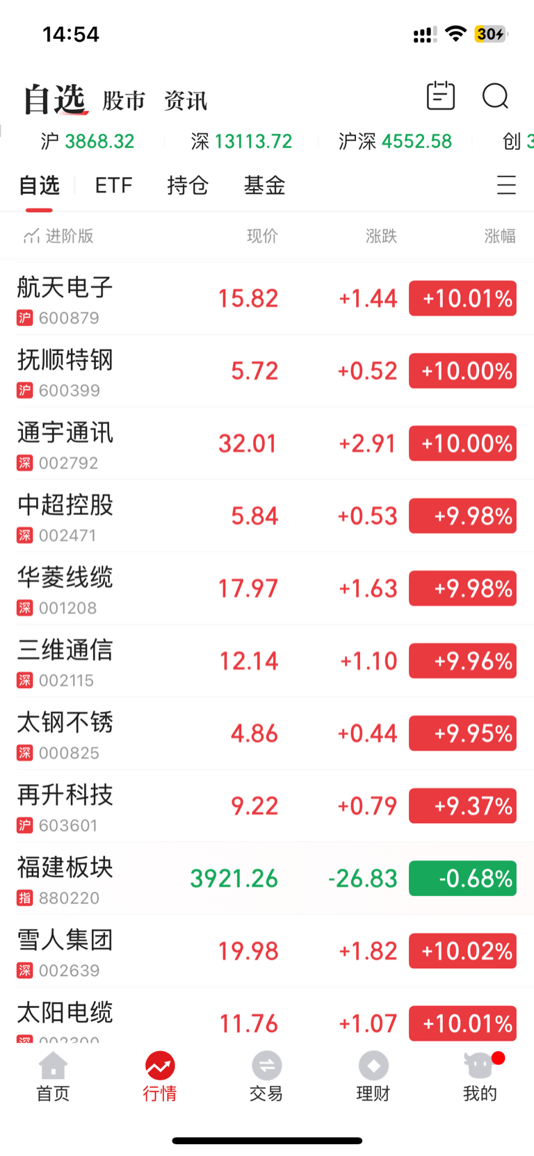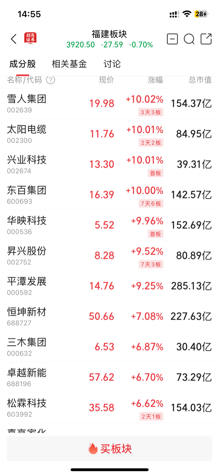 平头哥一路飙升,几乎没有调整,周五大涨,今天冲击涨停,过去带动了整个福建板块,凡事带动了板块的龙头都是英雄牛!向平头哥学习!