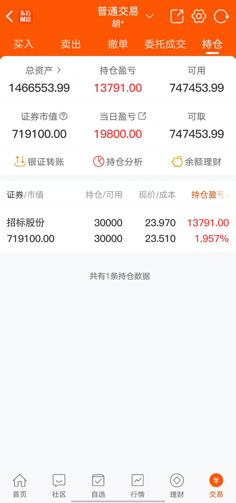 持仓情况:招标股份。