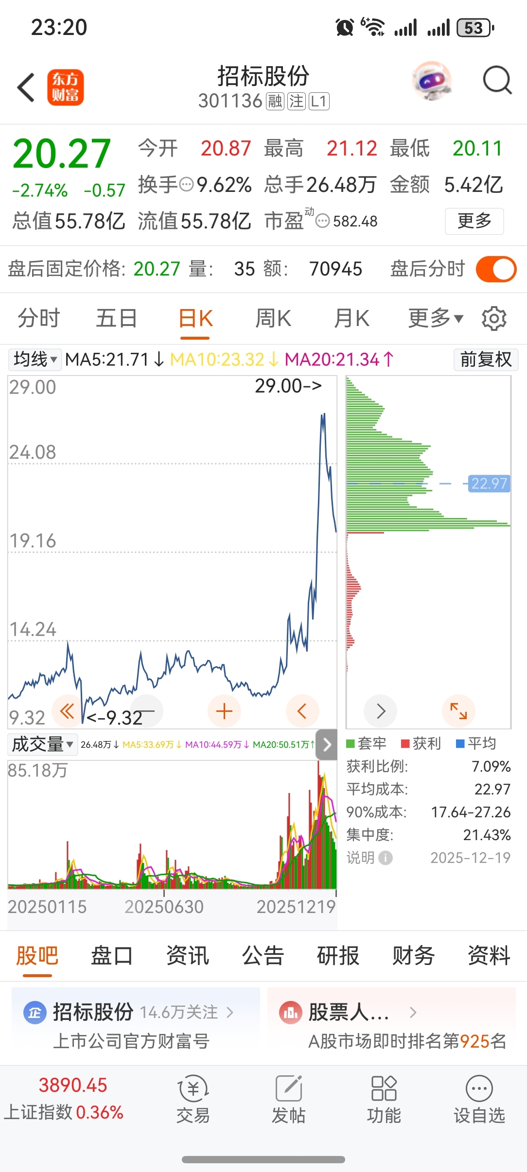 $招标股份(SZ301136)$ 还有纱臂在幻想,主升看不到他,这个时候拿的紧紧的,明天最低价19.50