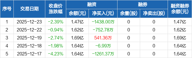 招标股份:融资净偿还1438万元,融资余额1.47亿元(12-23)