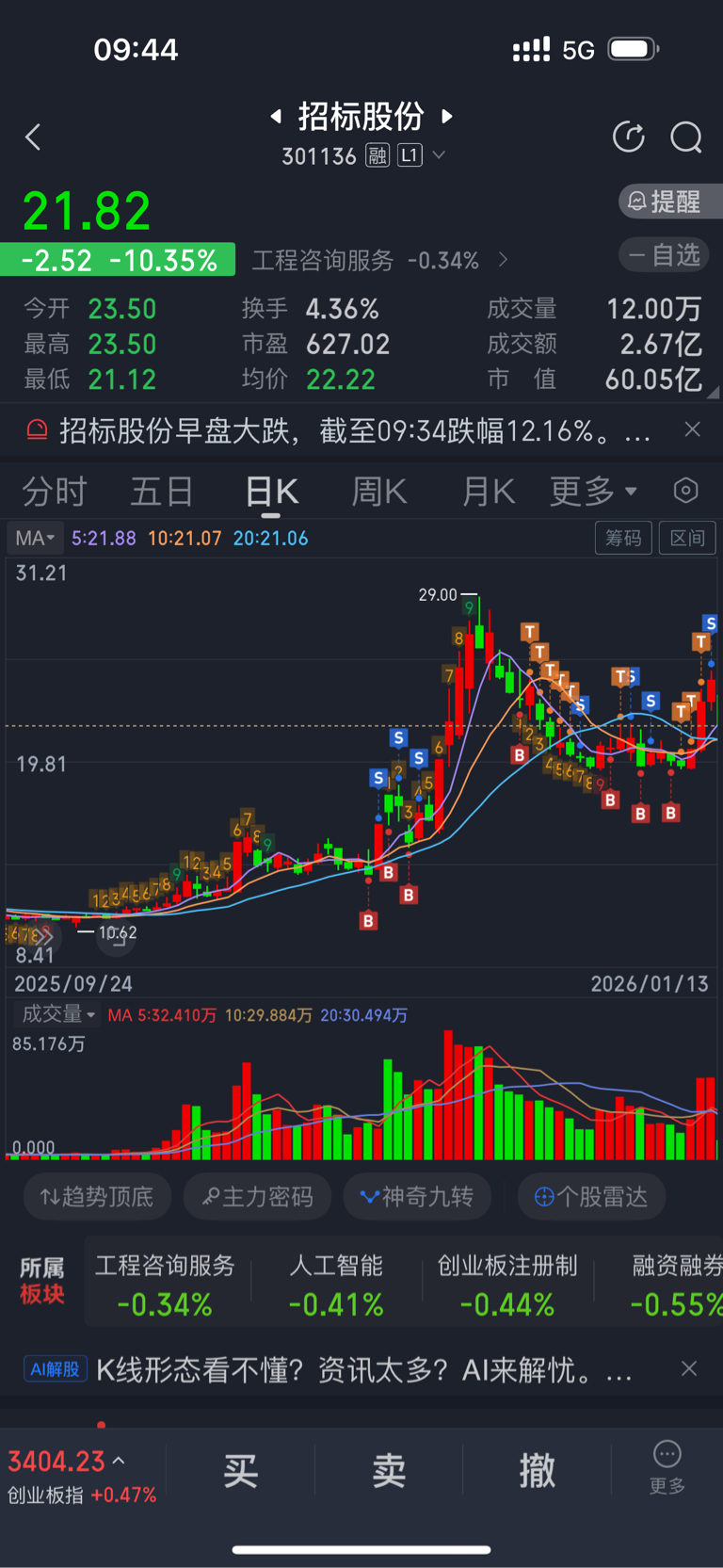 $招标股份(SZ301136)$ 还好昨天跑了就知道要闷杀