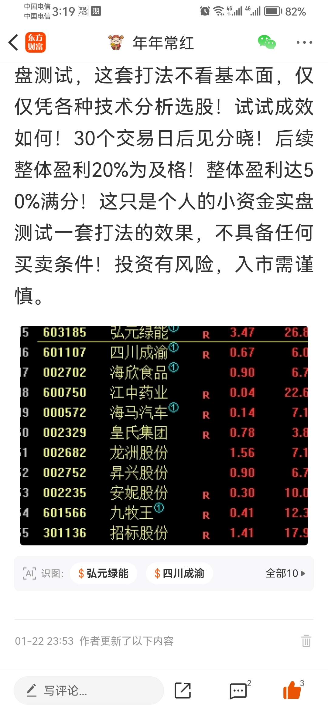 $招标股份(SZ301136)$ 1月22号的首贴截图,目前招标股份经过震荡后再度突破往上!30天后检验整体效果