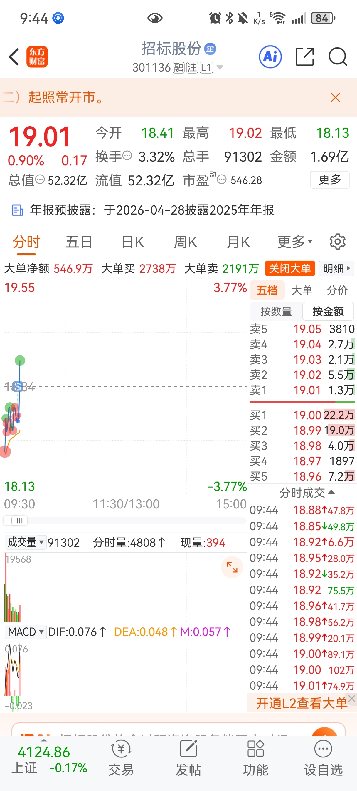 $招标股份(SZ301136)$ 啥意思?就差我那点吗?