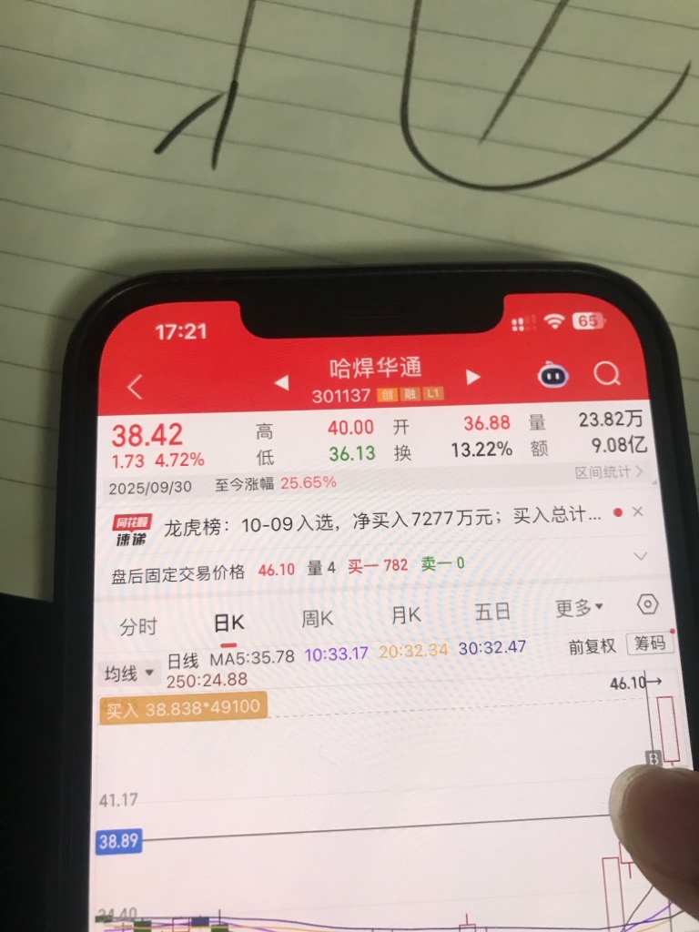 $哈焊华通(SZ301137)$ 哈焊华通国庆节最后一天潜伏的哈焊华通,本想上半仓,看合锻智能涨停随即大小账户平铺打满,这就是认知问题,哪些是龙头都在北哥的认知里,想在股海里吃肉你要懂板块龙头,主板龙头合锻智能涨停随即大小账户平铺满仓哈焊华通,合锻智能今天直接一字板,永鼎股份一字板