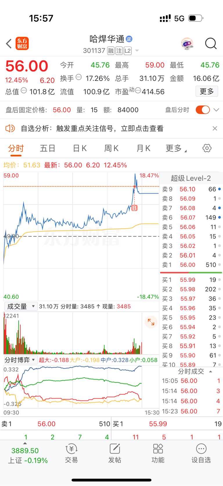 $哈焊华通(SZ301137)$ 57进的,明天大概率大面一碗