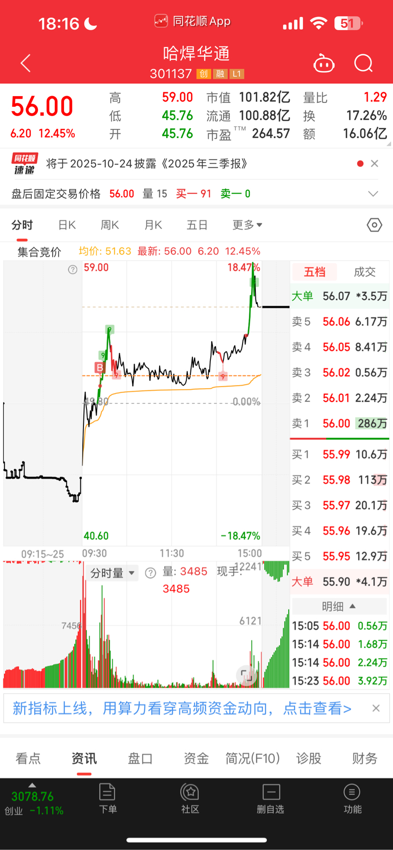 $哈焊华通(SZ301137)$ 早上出了晶合,入了这个,明天有肉吗