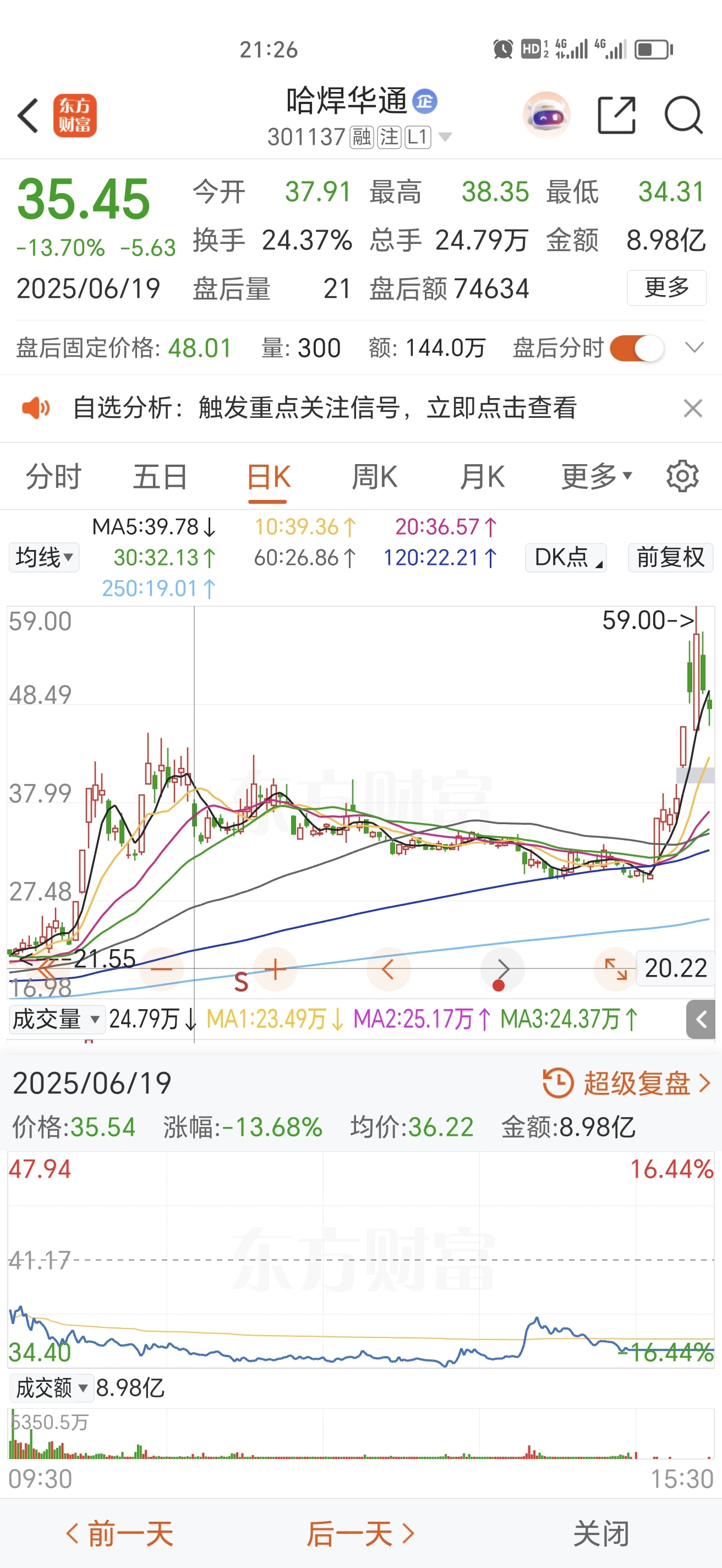 $哈焊华通(SZ301137)$ 看了很多减持公告次日表现,开盘就是最高点,明天不管负5,6,7,8开盘,开盘立即卖出。