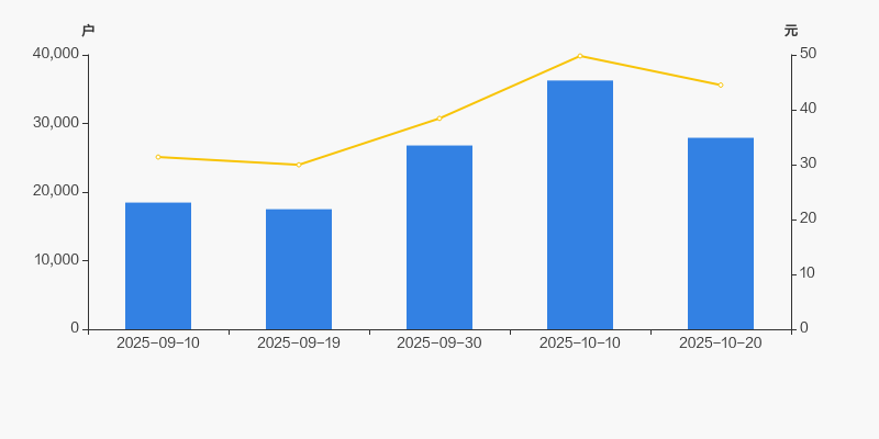 2025年9月10日至今,公司股东户数显著大幅增长,区间涨幅达51.15%。2025年9月10日至2025年10月20日区间股价上涨41.81%。