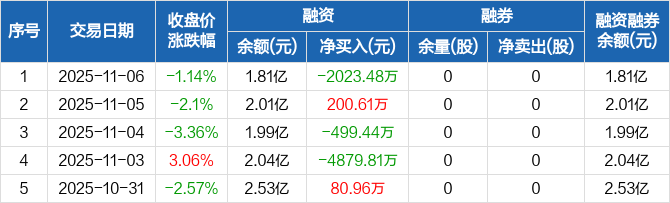 哈焊华通:融资净偿还2023.48万元,融资余额1.81亿元(11-06)
