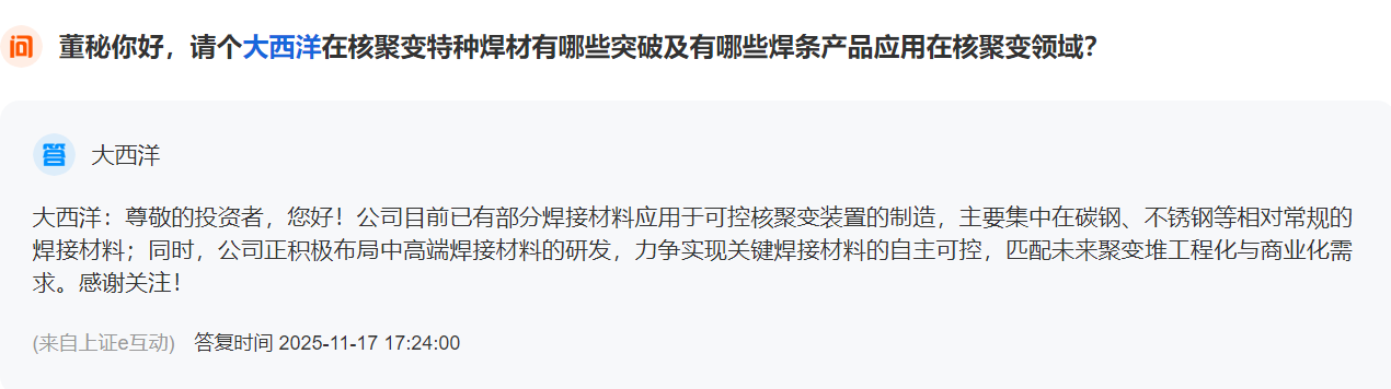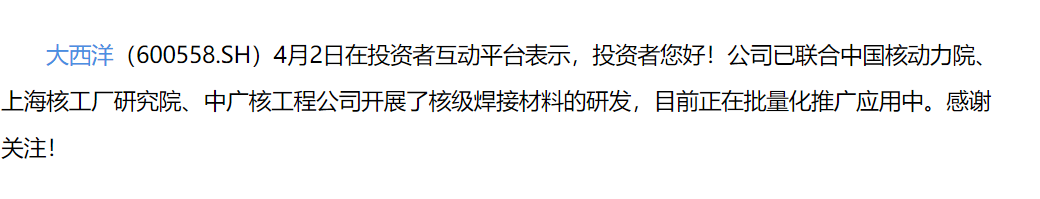 哈焊华通在可控核聚变的产品收入只占总收入的不足1%,真正可控核聚变焊材龙头是大西