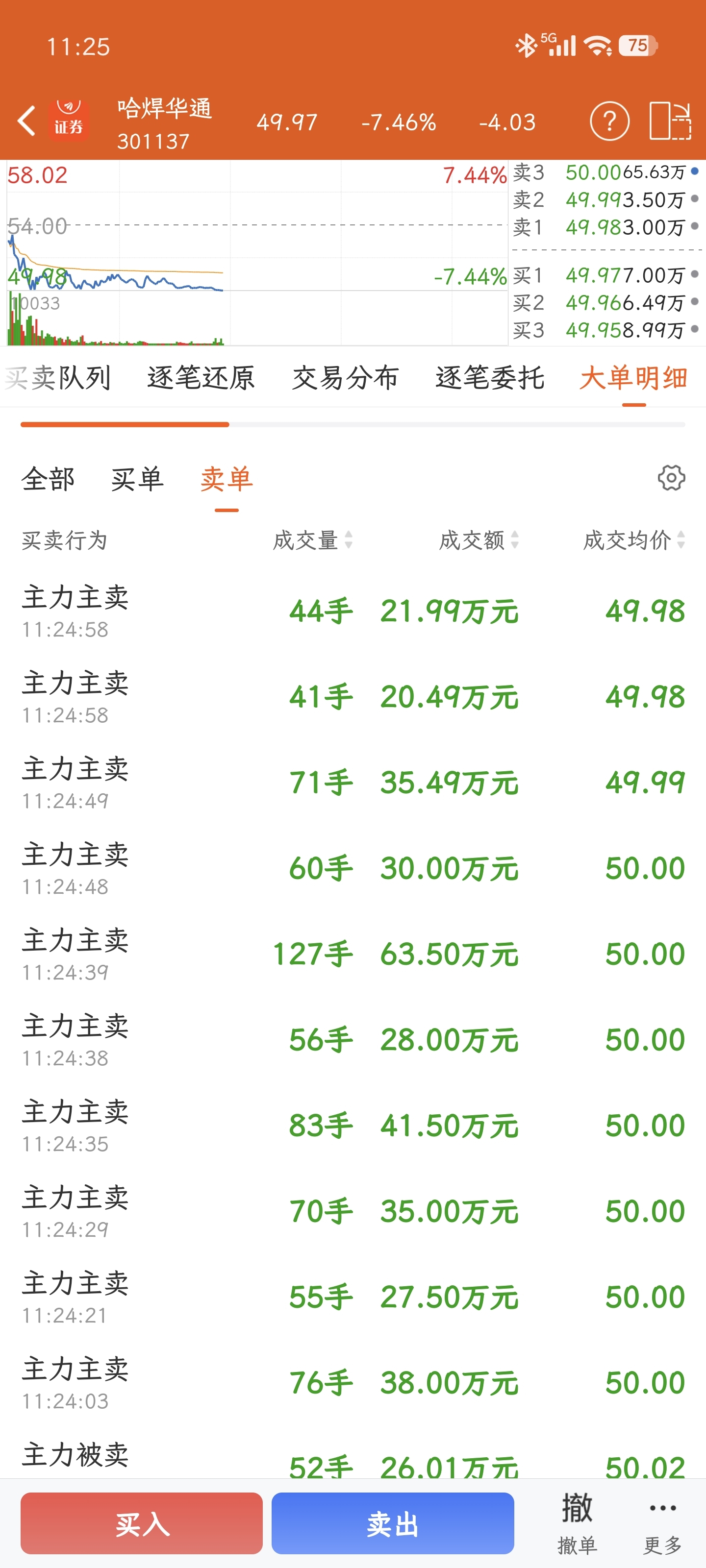$哈焊华通(SZ301137)$ 没救了,全是主卖的,割肉了,你可以拉了