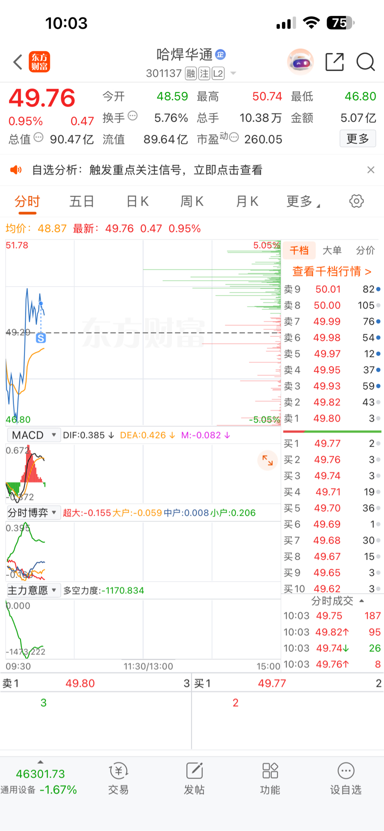 $哈焊华通(SZ301137)$ 昨天卖了九只羊,本想尾盘再接回来,最后还是买了你哈皮,早盘那么砸知道我有多绝望吗?九只羊十几个点,万幸的是今天市场这么差的情况下你还能拉红让我出掉,九只羊是我这个月最大的痛