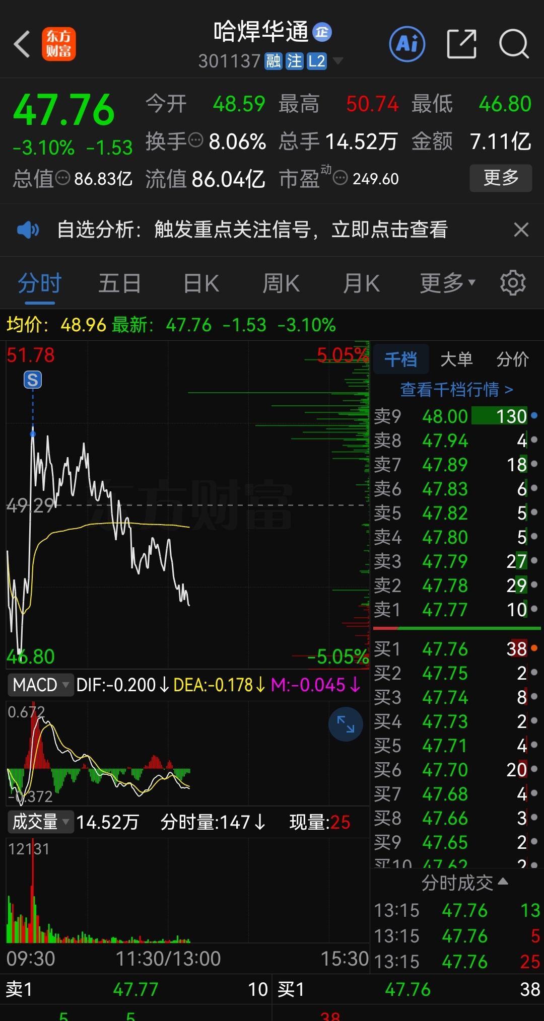 $哈焊华通(SZ301137)$ 拜拜了,大盘太差了