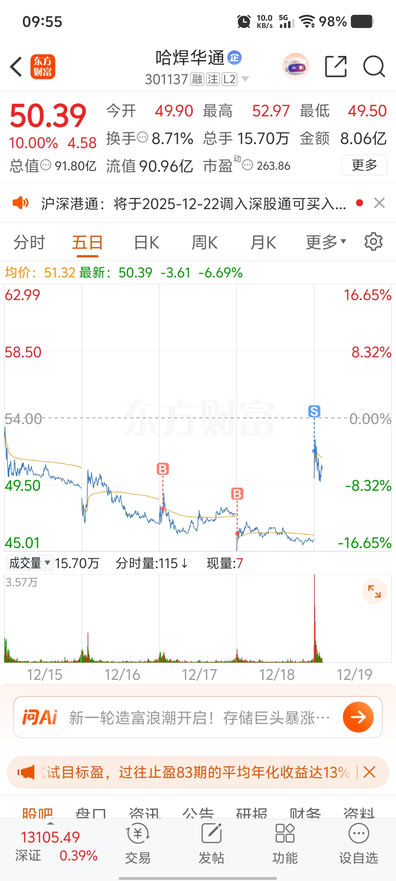 $哈焊华通(SZ301137)$ 前天买进去的20手,昨天跌成嗨样又补个20手,完全没想到今天能吃上11个点